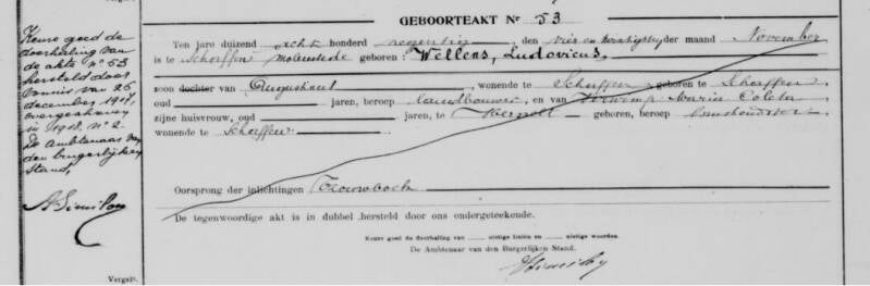 Er is geen officieel geboorteakte omdat de Duitsers tijdens WOI het gemeentehuis van Schaffen in brand hebben gestoken.