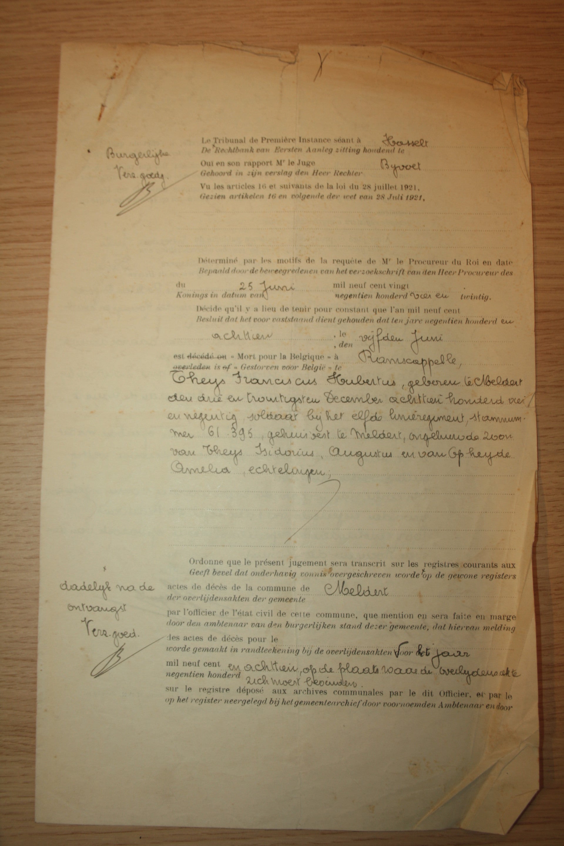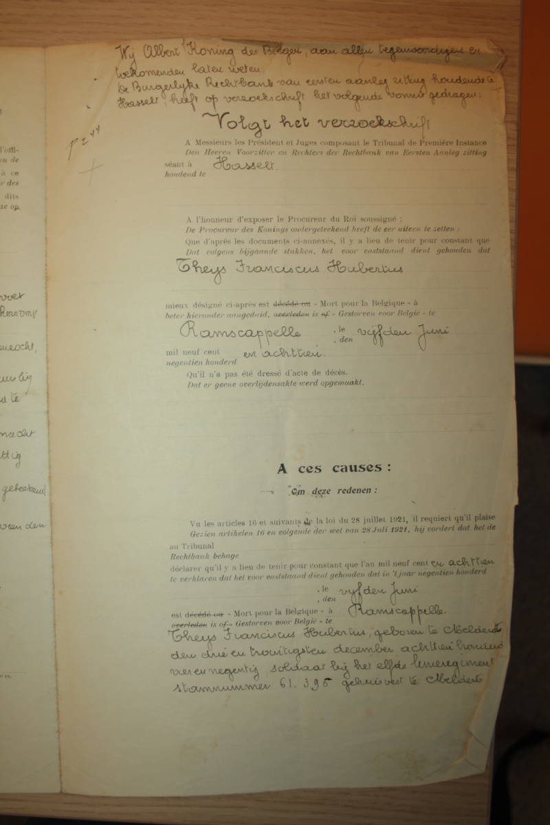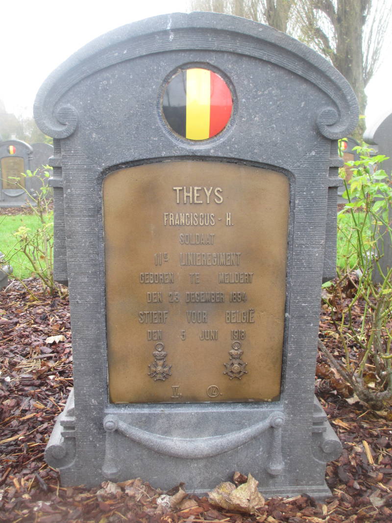 Soldaat Theys overlijdt op 5 juni 1918 en wordt reeds op 6 juni 1918 begraven in Steenkerke bij Veurne waar hij nu nog steeds rust.