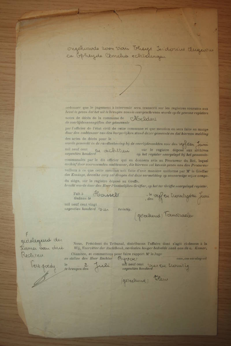 Een jaar later, op 27 juli 1919, sterft zijn grootmoeder Maria Josepha Vandevenne, en nog een jaar later sterft ook zijn vader op 25 augustus 1920 op 50 jarige leeftijd.