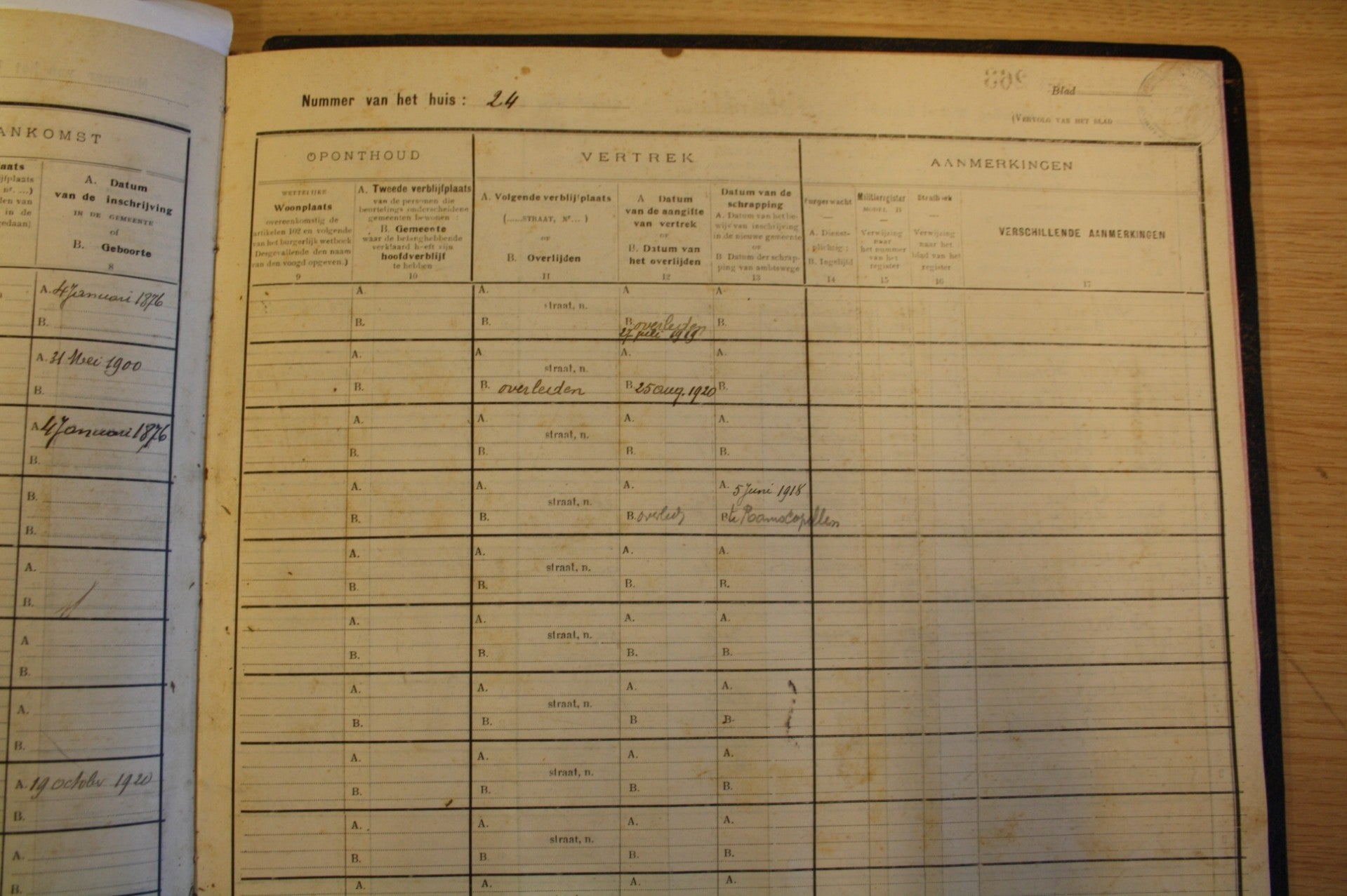 Woonsituatie: Register Burgerlijke Stand 1910 - 1920