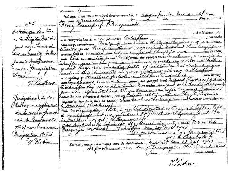 De akte is heel beknopt. Zoals aangegeven komen de gegevens uit het trouwboek.